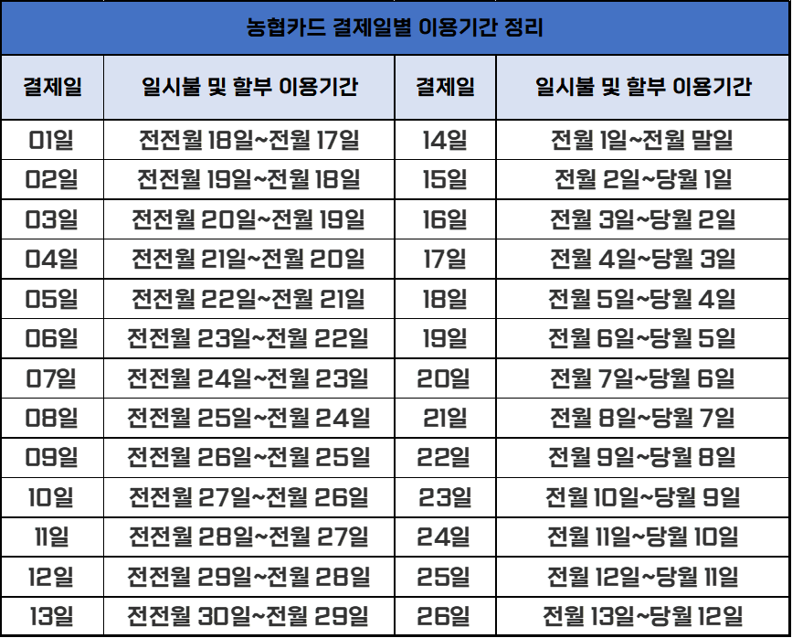 2. 농협카드 결제일별 사용기간 결제일 14일이 갖는 장점