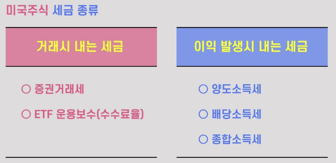 미국 주식 투자에서 발생하는 주요 세금은 크게 두 가지입니다: 양도소득세와 배당소득세.
