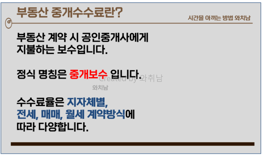부동산 계약을 할 때 공인중개사, 흔히 복덕방이라고 불리는 중개인에게 지불하는 수당을 말합니다.