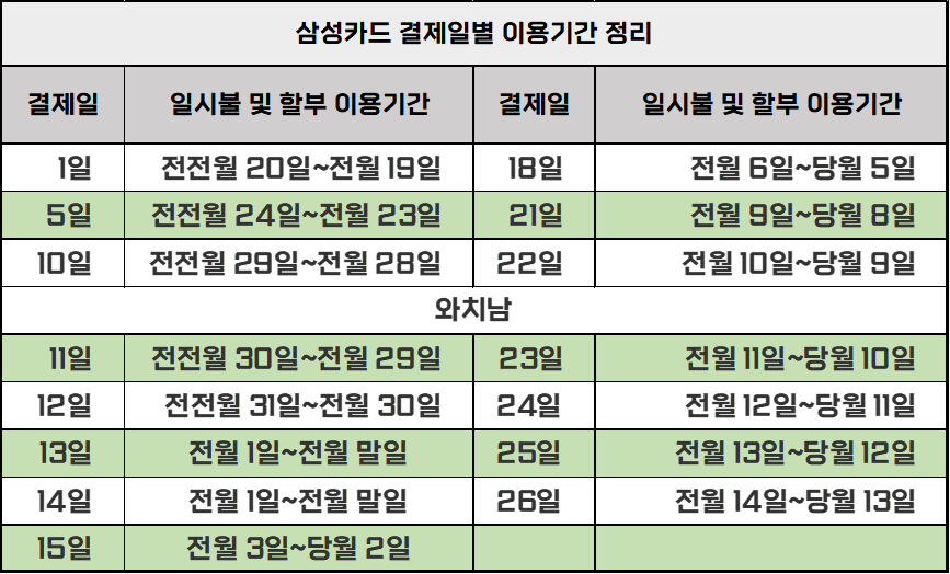 삼성카드 결제일별 사용기간 끝
