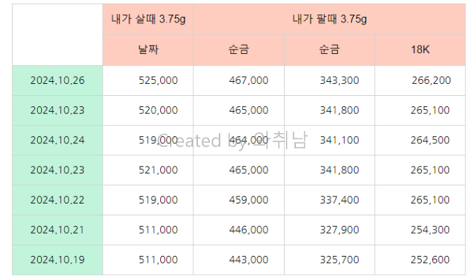 | | 내가 살때 3.75g | 내가 팔때 3.75g | ||