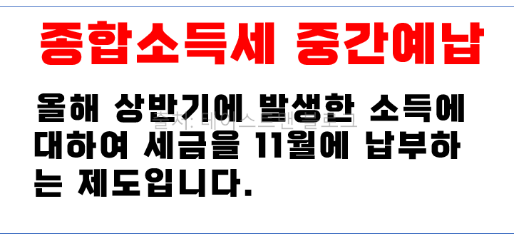 오늘은 11월에 꼭 챙기셔야 하는 종합소득세 중간예납에 대해 속 시원히 알려드리려고 합니다.