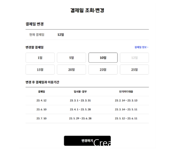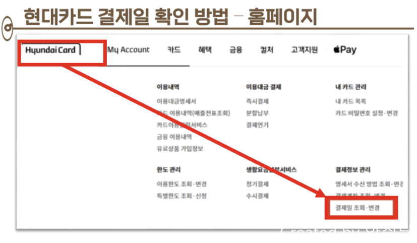 - 현대카드 결제일별 사용기간 변경 방법